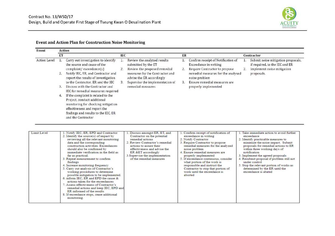 1.1. The Acciona Agua, S.A. Trading, Jardine Engineering Corporation, Limited and China State Construction Engineering (Hong Kong) Limited As AJC Joint Venture (AJCJV) is contracted to carry out the Design, Build and Operate First Stage of Tseung Kwan O Desalination Plant (DPTKO) under Contract No. 13/WSD/17 (the Contract).