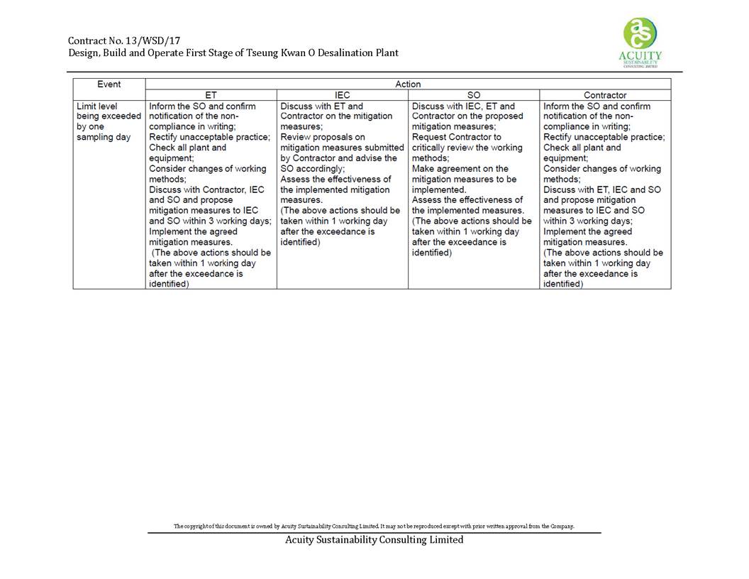 A13. It was concluded that all exceedances recorded in the reporting month were unrelated to the Contract.