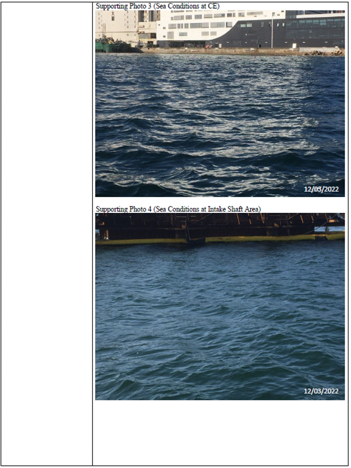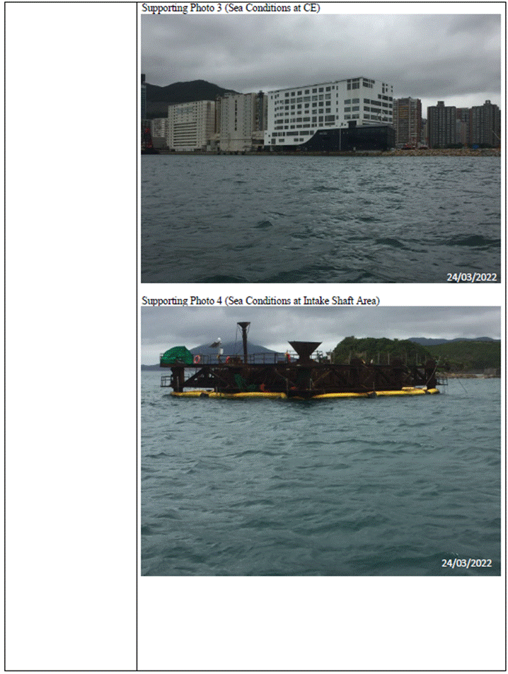 dewatering of unpolluted seawater inside the outfall caisson. Hence the SS exceedances