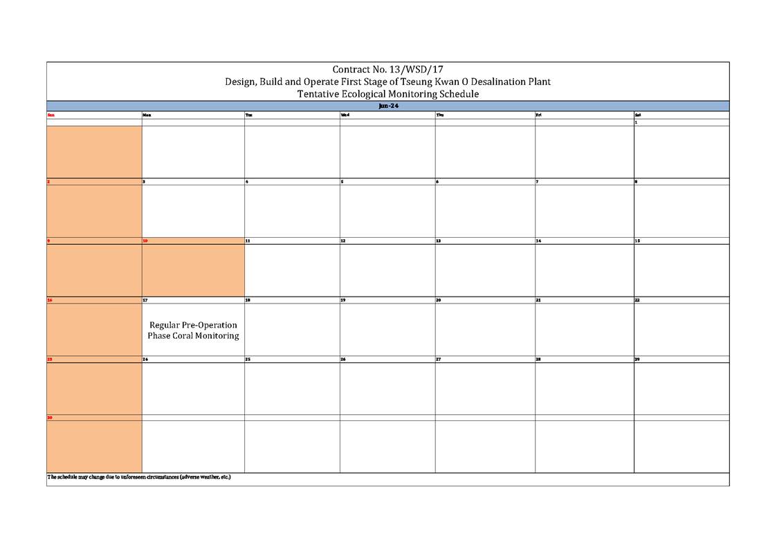 A10. The EM&A works for Pre-operation phase marine water quality were conducted during the reporting period in accordance with the EM&A Manual. Sixteen (16) of the pre- operation phase water quality monitoring results of SS obtained had exceeded the Action Level. Nine (9) of the pre-operation phase water quality monitoring results of SS obtained during the reporting period had exceeded the Limit Level.