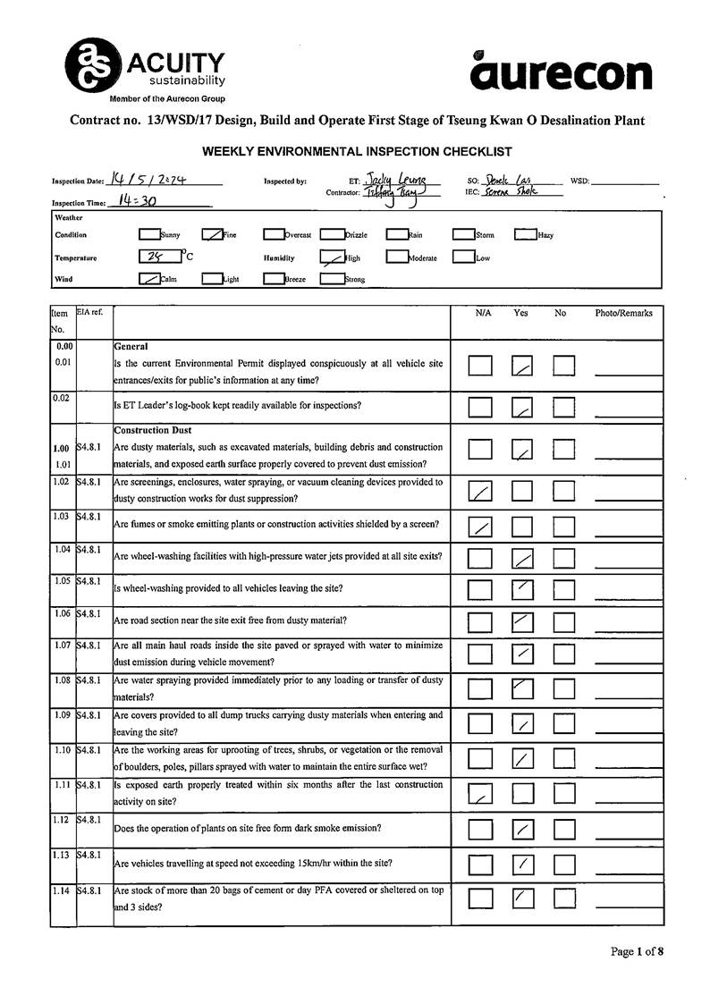 A1. The Project, Design, Build and Operate First Stage of Tseung Kwan O Desalination Plant (TKODP), is a Designated Project under the Environmental Impact Assessment Ordinance (Cap. 499) (EIAO) and is currently governed by a Further Environmental Permit (EP No. FEP - 01/503/2015/B) for the construction and operation of the Contract.