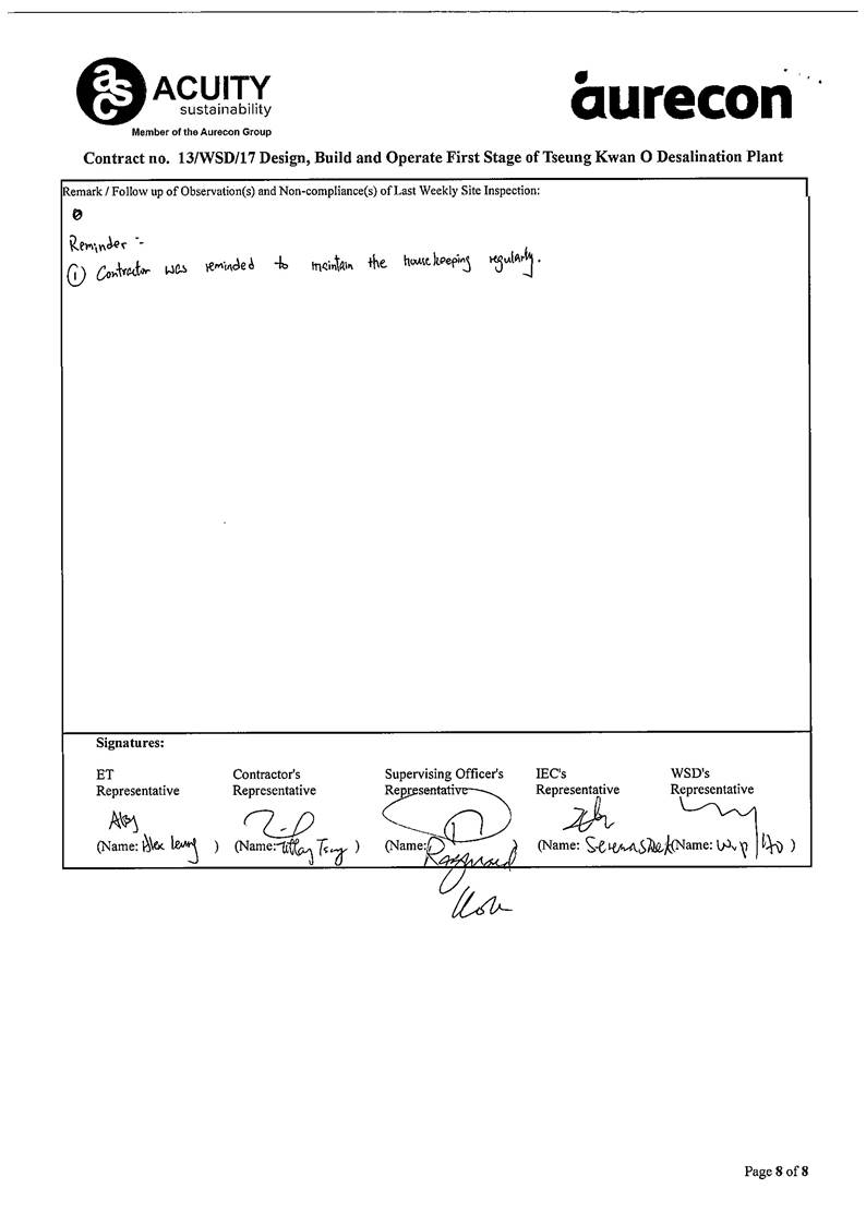 1.1. The Acciona Agua, S.A. Trading, Jardine Engineering Corporation, Limited and China State Construction Engineering (Hong Kong) Limited as AJC Joint Venture (AJCJV) is contracted to carry out the Design, Build and Operate First Stage of Tseung Kwan O Desalination Plant (DPTKO) under Contract No. 13/WSD/17 (the Contract).