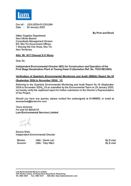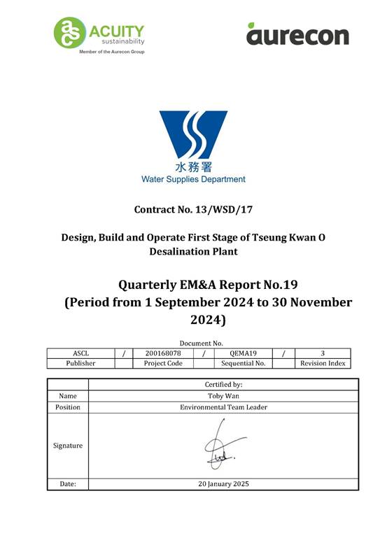 A4. This is the 19th Quarterly EM&A Report, prepared by ASCL, for