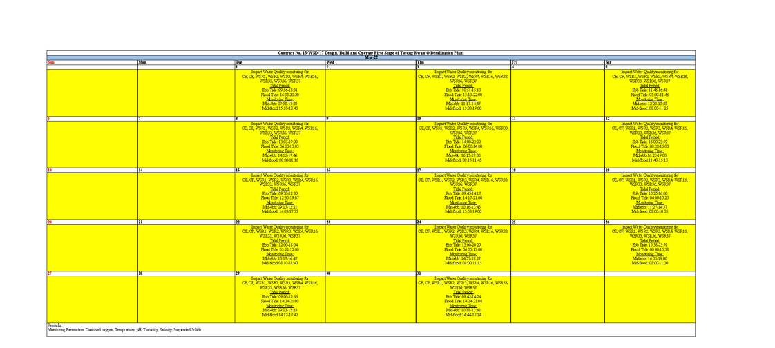A9. The EM&A works for water quality were conducted during the reporting period in accordance with the EM&A Manual.