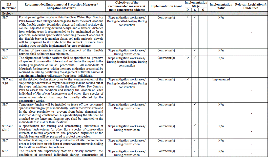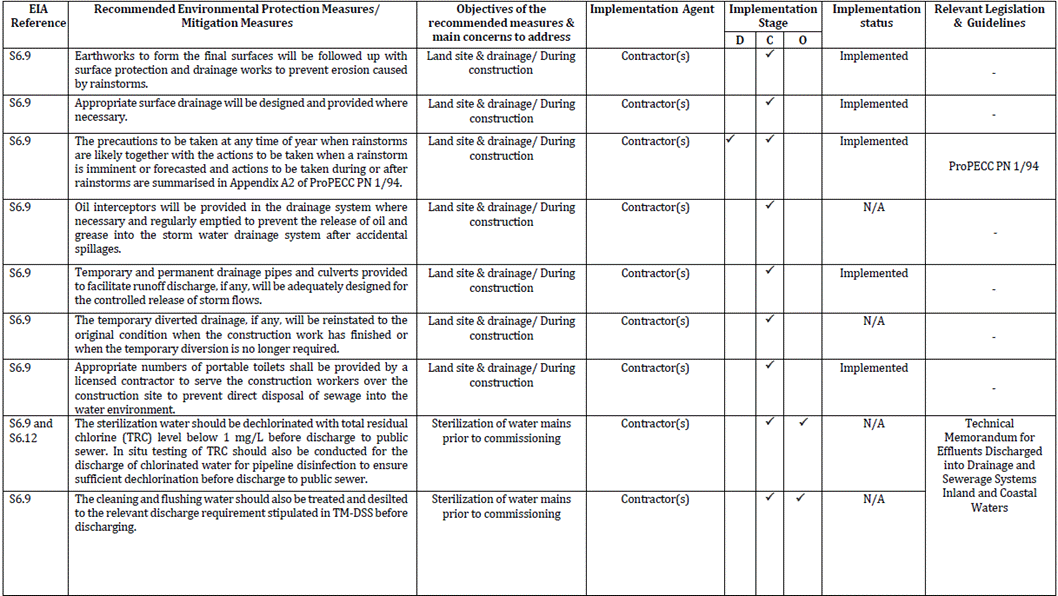 A7. The key environmental mitigation measures implemented for the Contract in this reporting period associated with the above construction works include:
