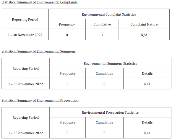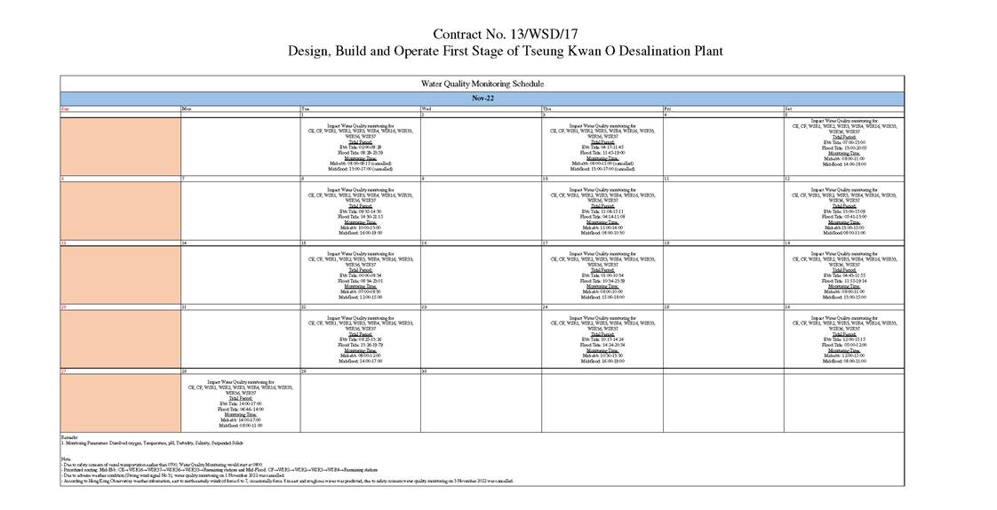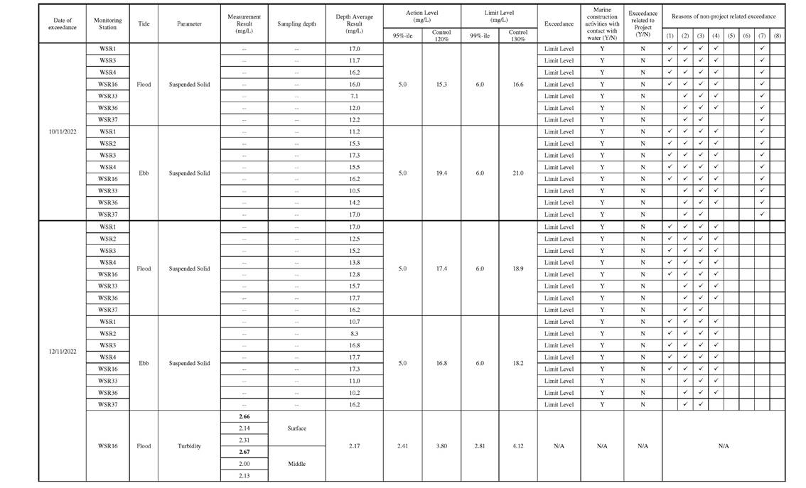 A3. This is the 33rd Monthly EM&A Report, prepared by ASCL, for the Contract summarizing the monitoring results and audit findings of the EM&A programme at and around Tseung Kwan O Area 137 (TKO 137) during the reporting period from 1 November to 30 November 2022.