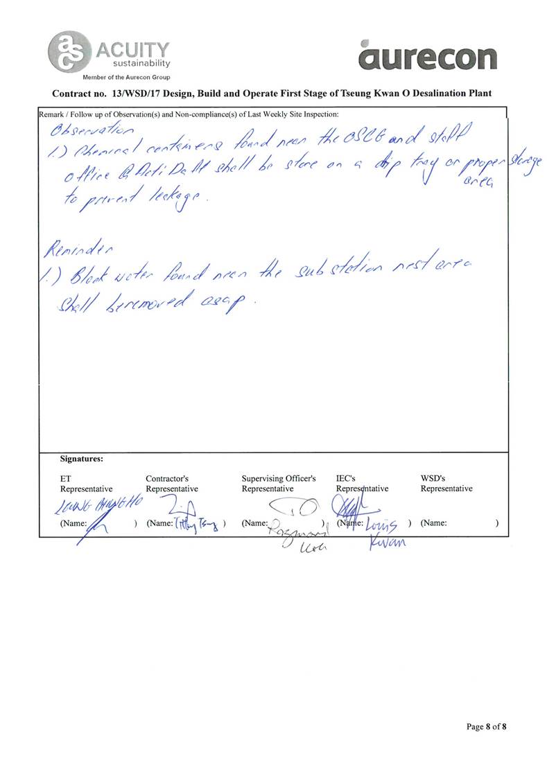 ActiDAFF - Installation of R/F Kiosk Metal Doors - Water proofing work on roof of Cartridge Filter Plant Room - Construction of kiosks and installation of louvre - Underground utility construction - Scaffolding, installation of mechanical equipment and piping |