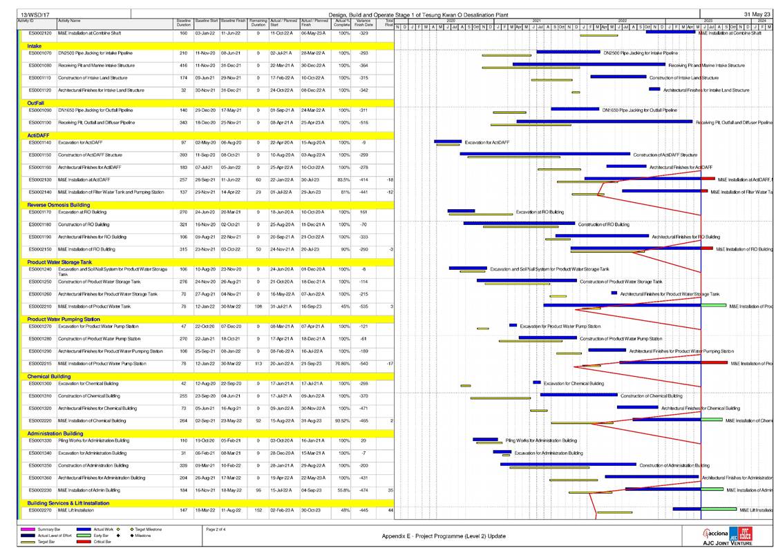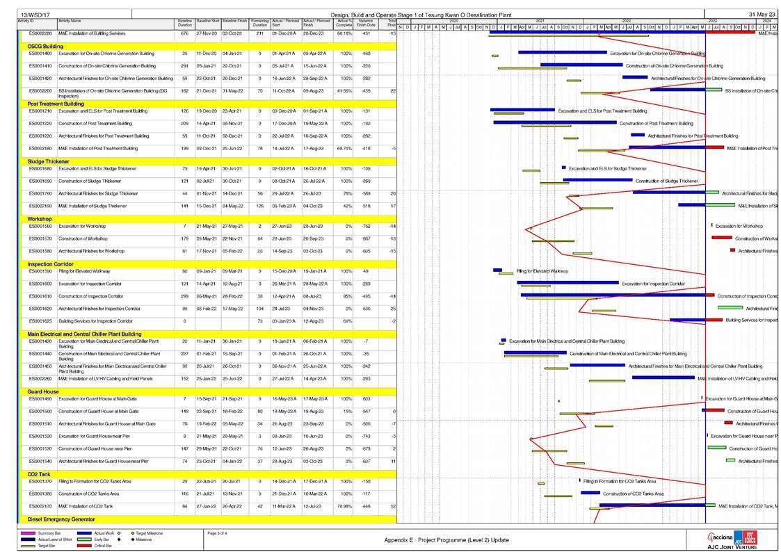 Reverse Osmosis Building - Installation of building services, electrical switchboard, mechanical equipment, steel pipe, Glass Reinforced Plastics (GRP) pipe, pressure test of the GRP pipe, Membrane Loading, raised floor - Installation of metal cladding, handrailing and louvers - Underground utility construction work - Pipe laying at corridor |