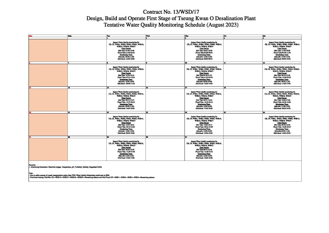 A11. Investigation on the reason of exceedance has been carried out, where the exceedances of SS on 1, 3, 5, 10, 12, 17, 22, 26 and 29 August 2023 were concluded to be unrelated to the Contract as detailed in the Incident Reports on Action Level or Limit Level Non- compliance along with supporting materials in Appendix K.