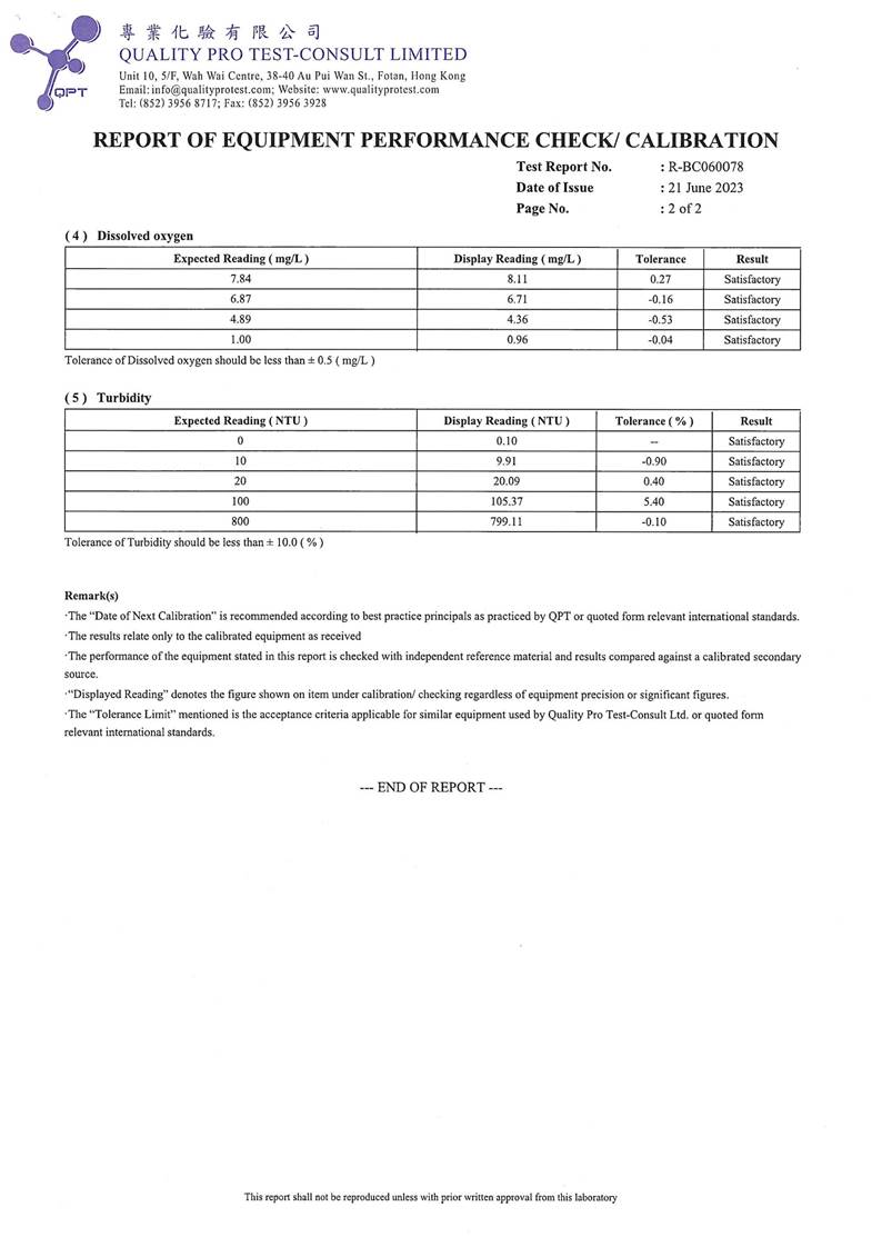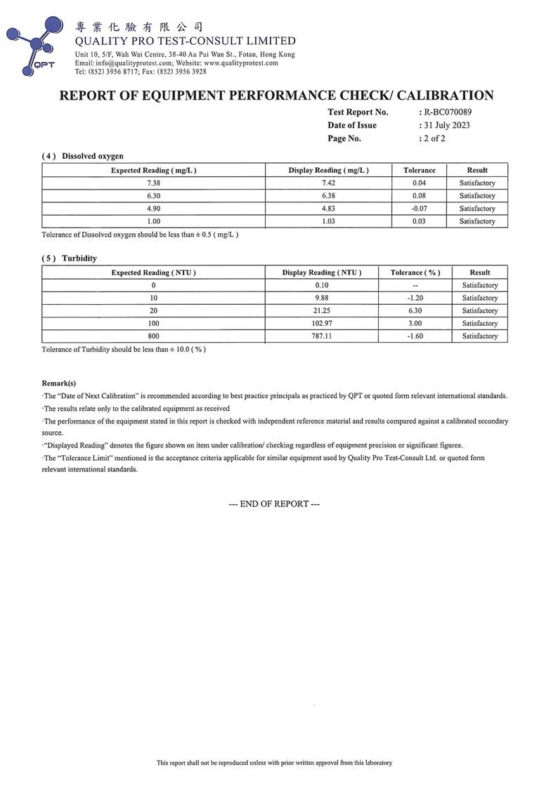Appendix F Water Quality and Landfill Gas Equipment Calibration Certificate