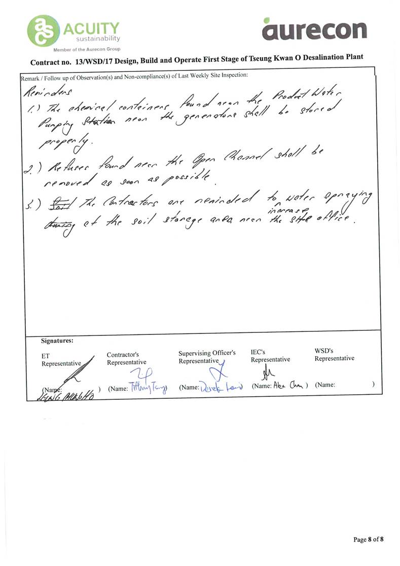 A9. The EM&A works for water quality were conducted during the reporting period in accordance with the EM&A Manual.