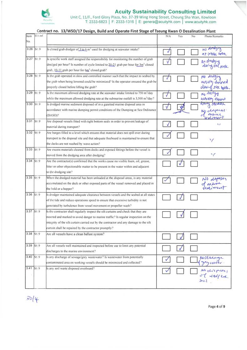 A9. The EM&A works for water quality were conducted during the reporting period in accordance with the EM&A Manual.