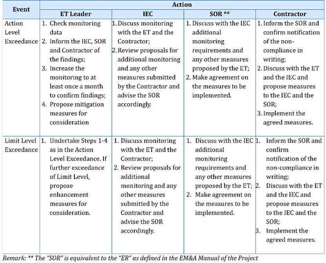 Table D2 Event and Action Plan for Ecology during Operation Phase