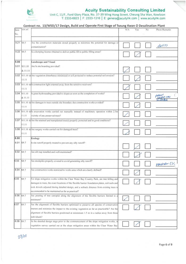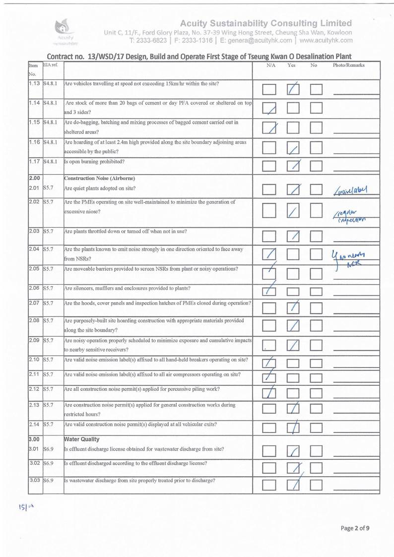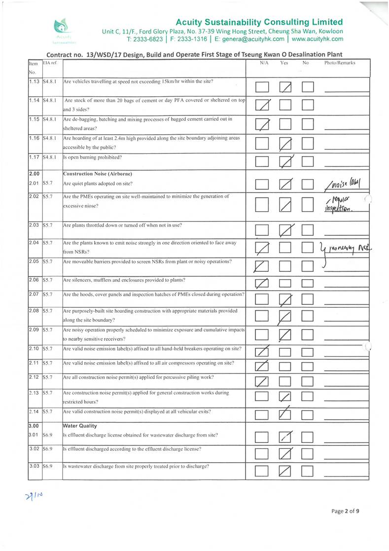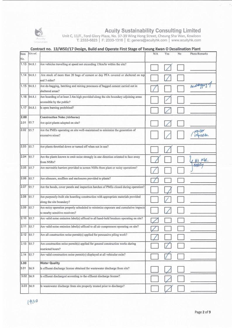 in the aspects of construction dust, construction noise, water quality,