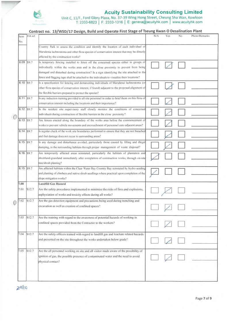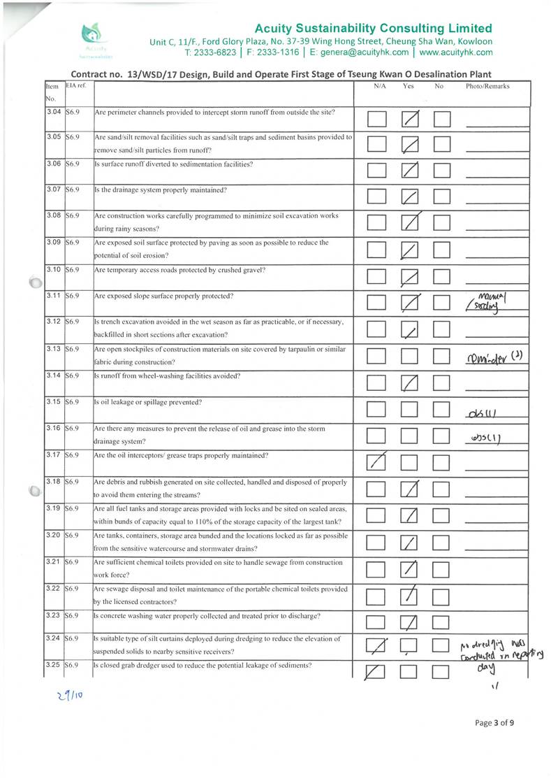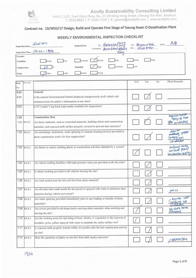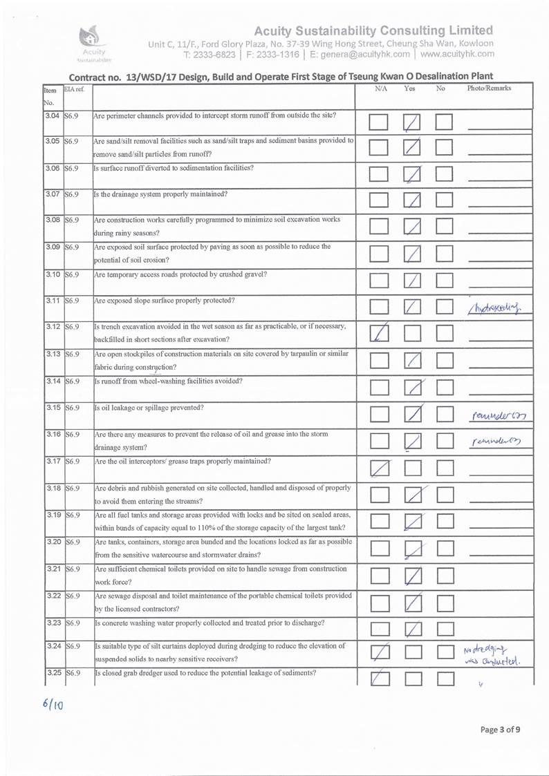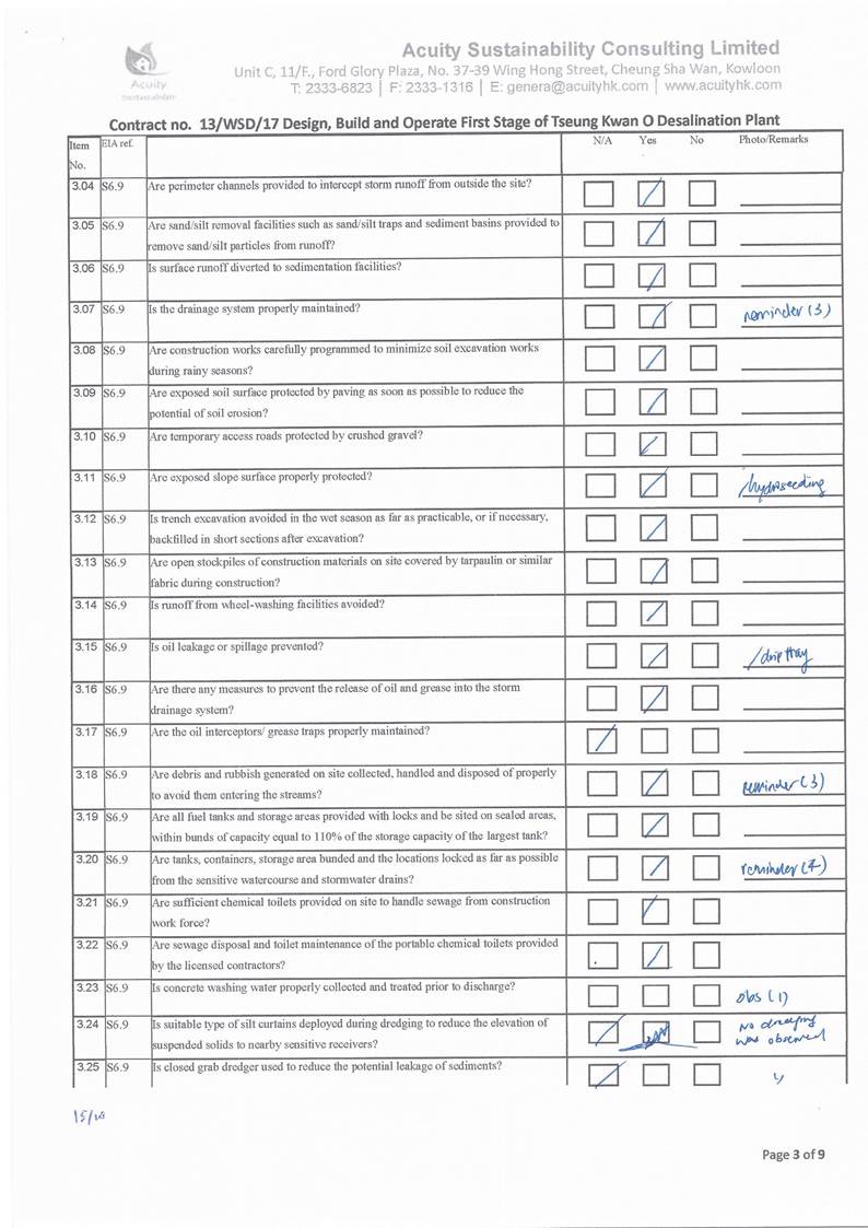 in the aspects of construction dust, construction noise, water quality,