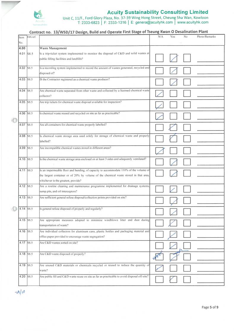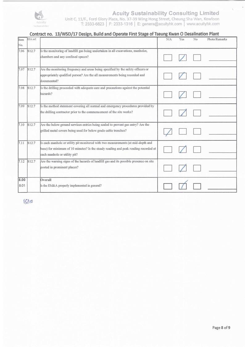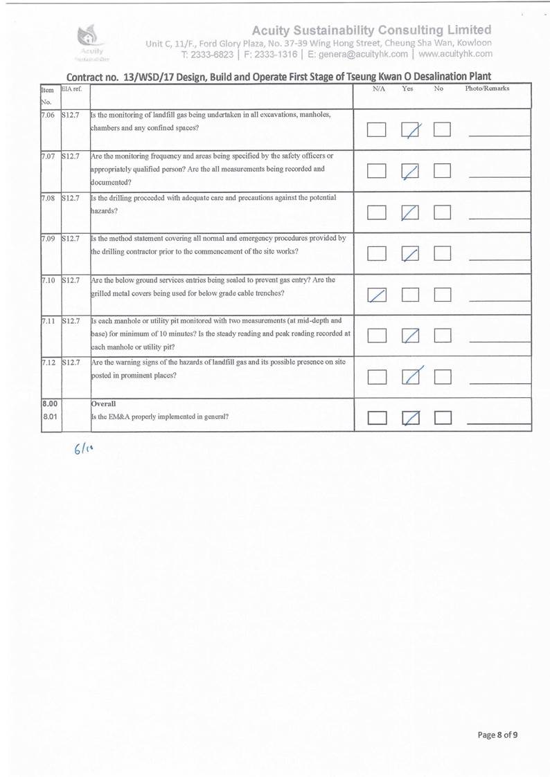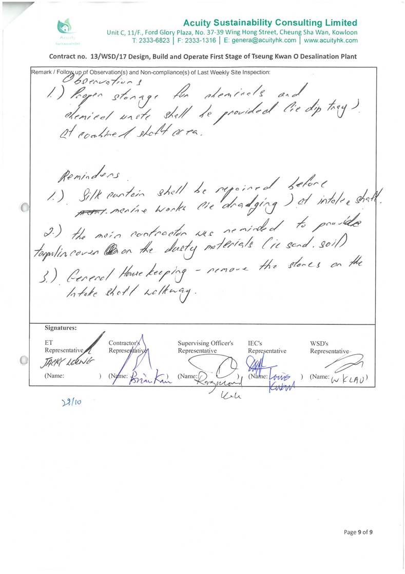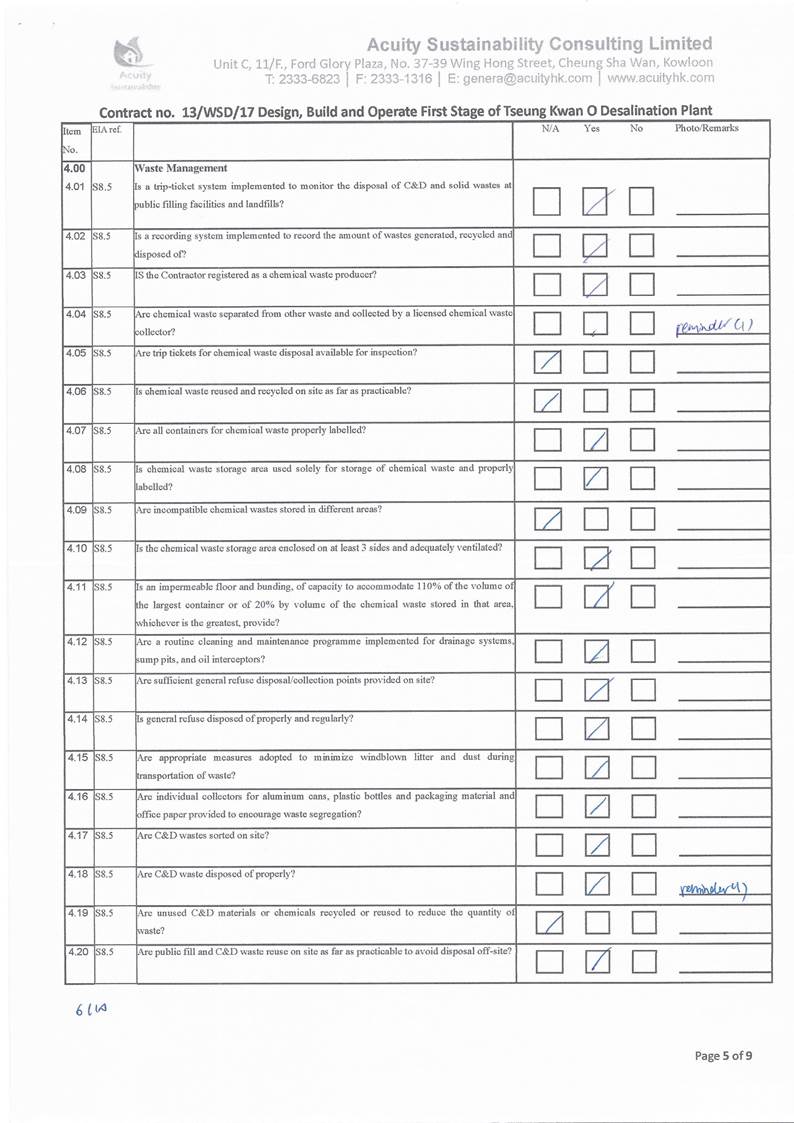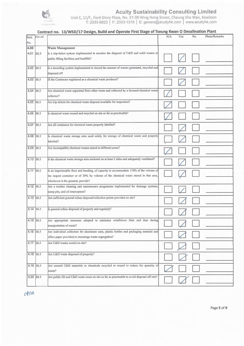 (11.7 mg/L) and WSR4 (5.8 mg/L). With reference to the work schedule provided by the Main Contractor,