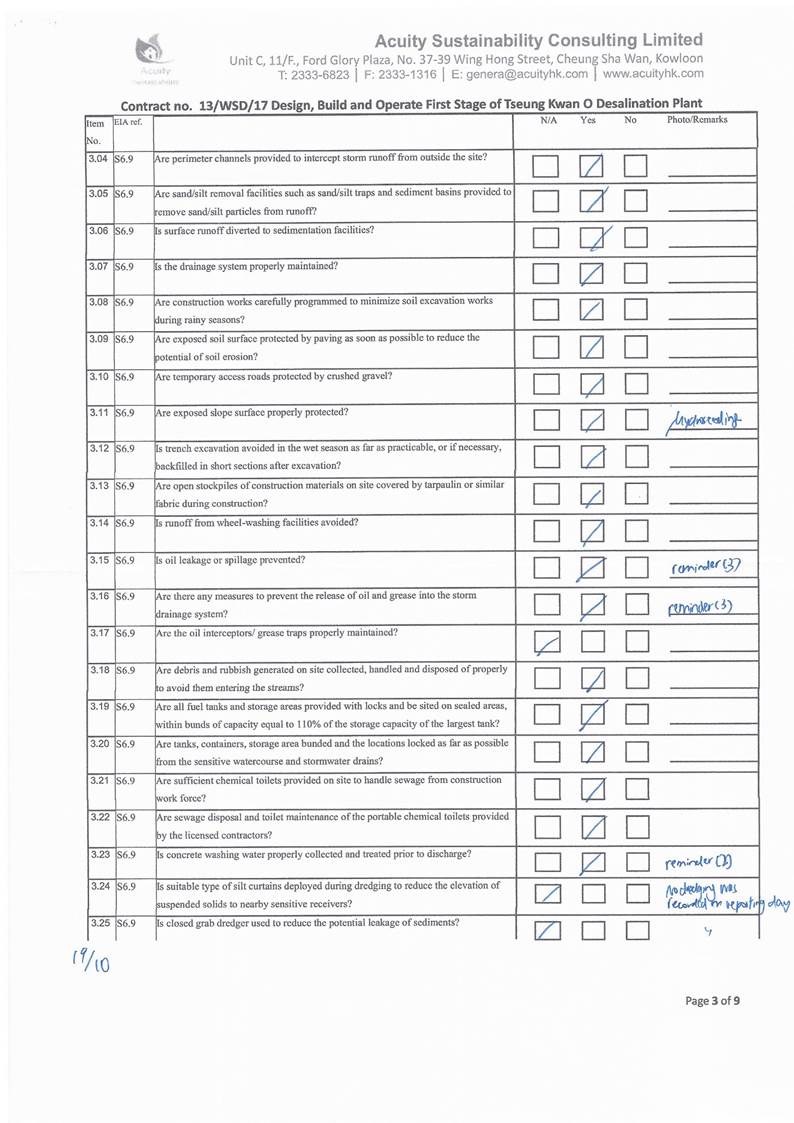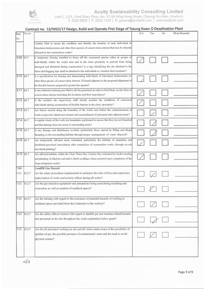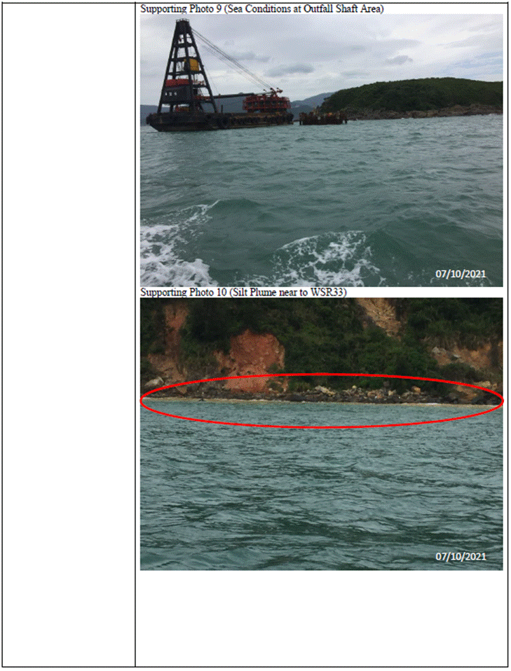 to marine works and SS level, the SS exceedance is concluded not project relevant. According to