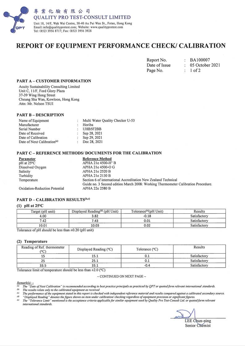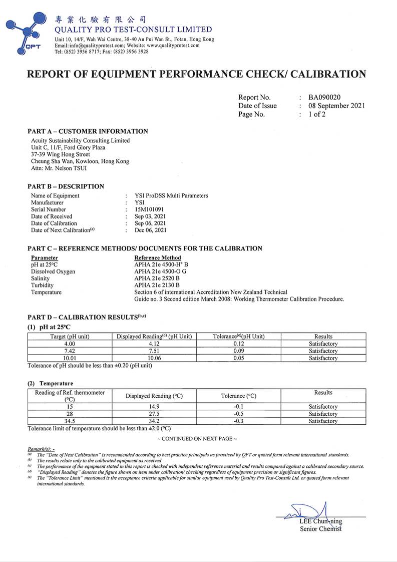 Equipment Calibration Certificate