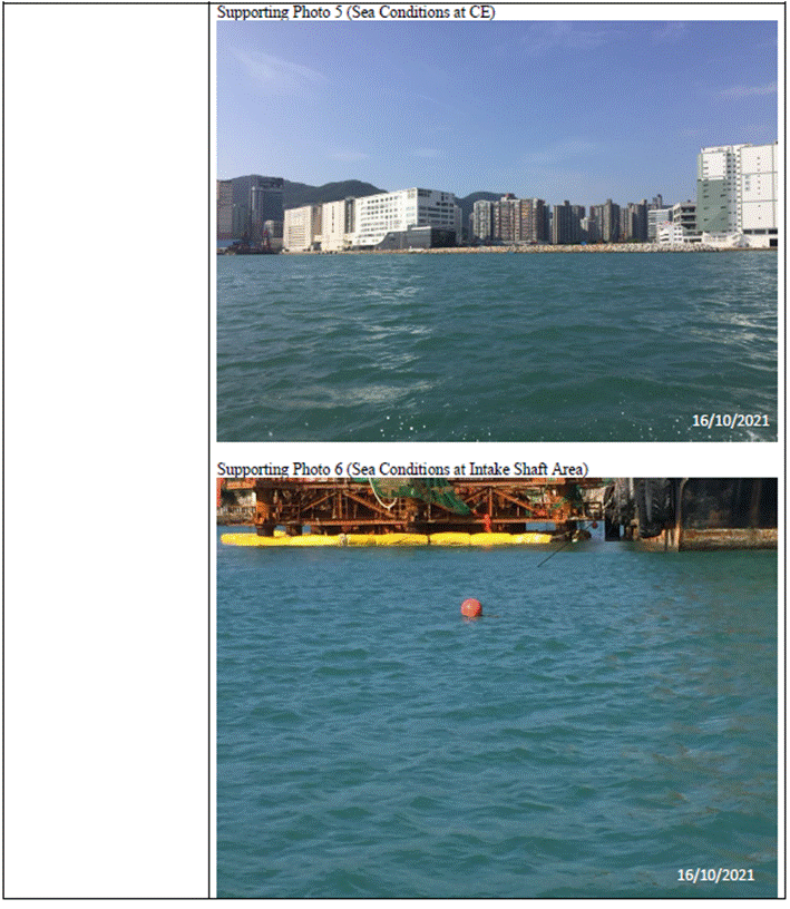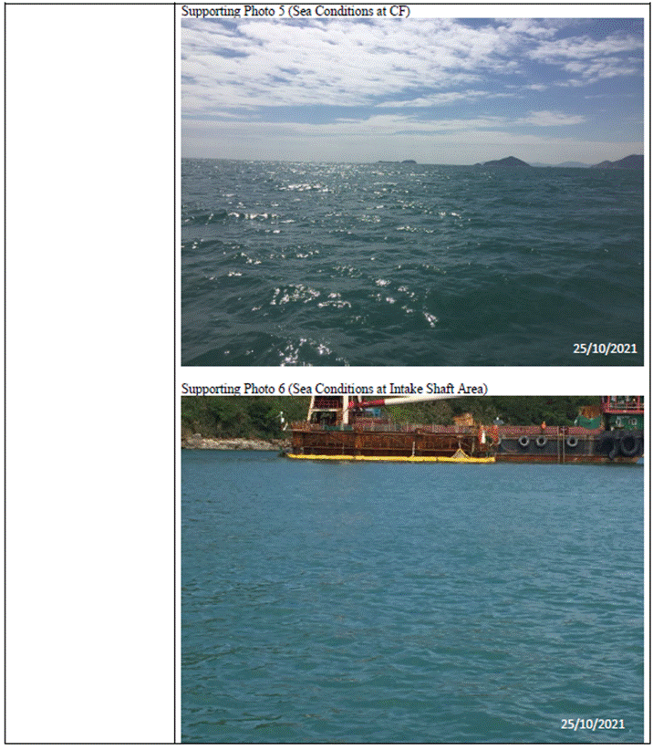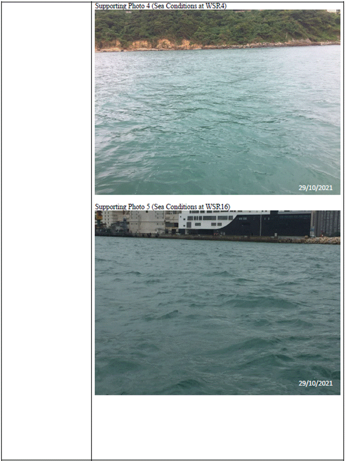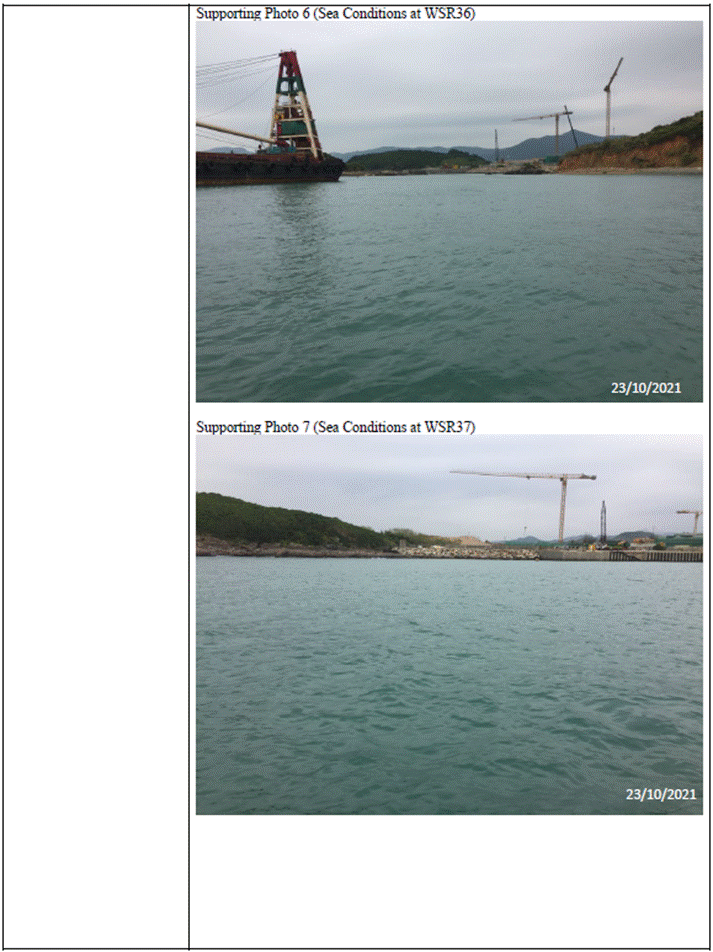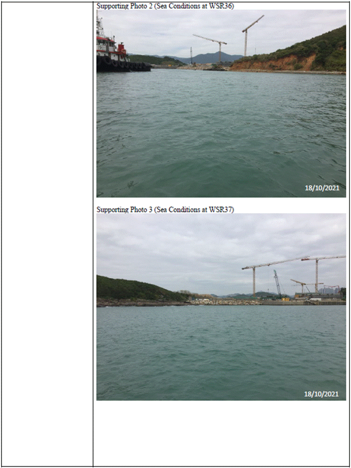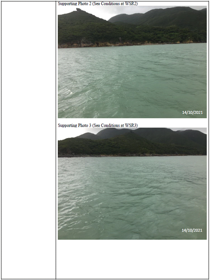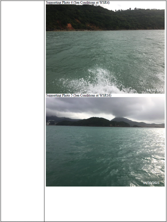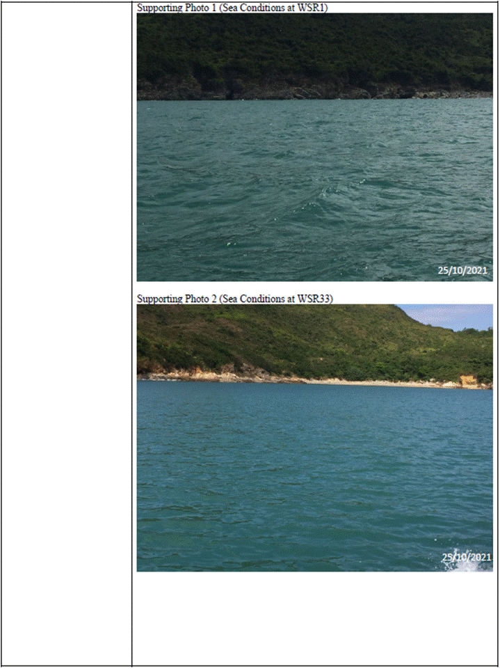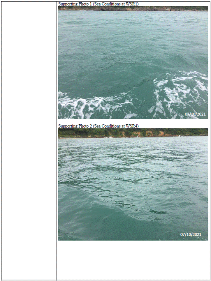 (Sourced from http://current.hydro.gov.hk/en/map.html) Supporting Photo 1 (Sea Conditions at WSR1)