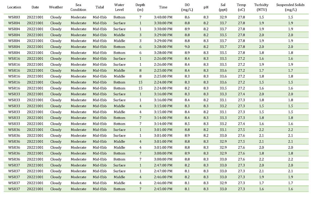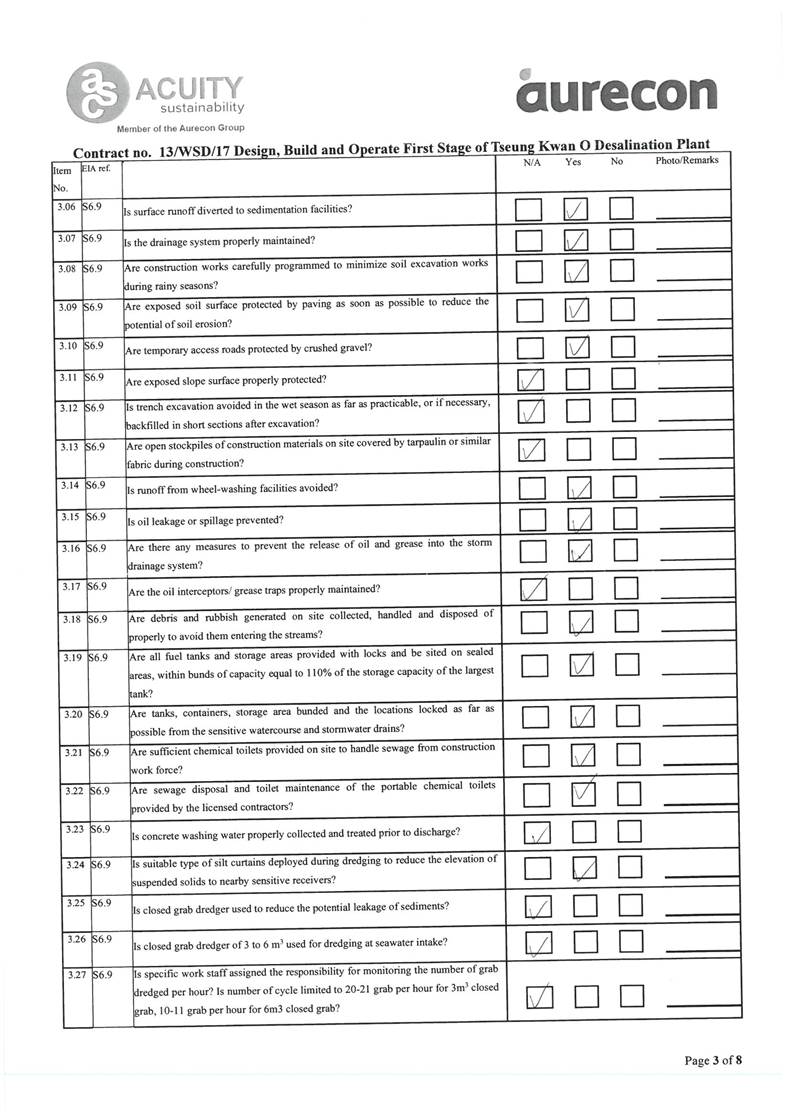 - Impact on water quality from marine construction works and inland construction works.