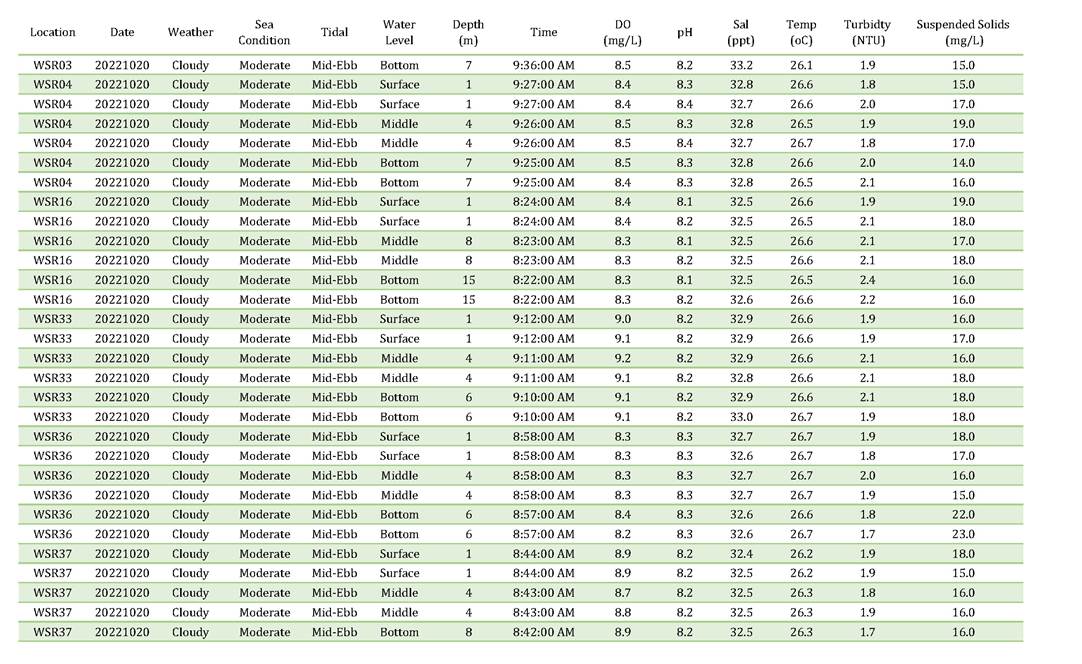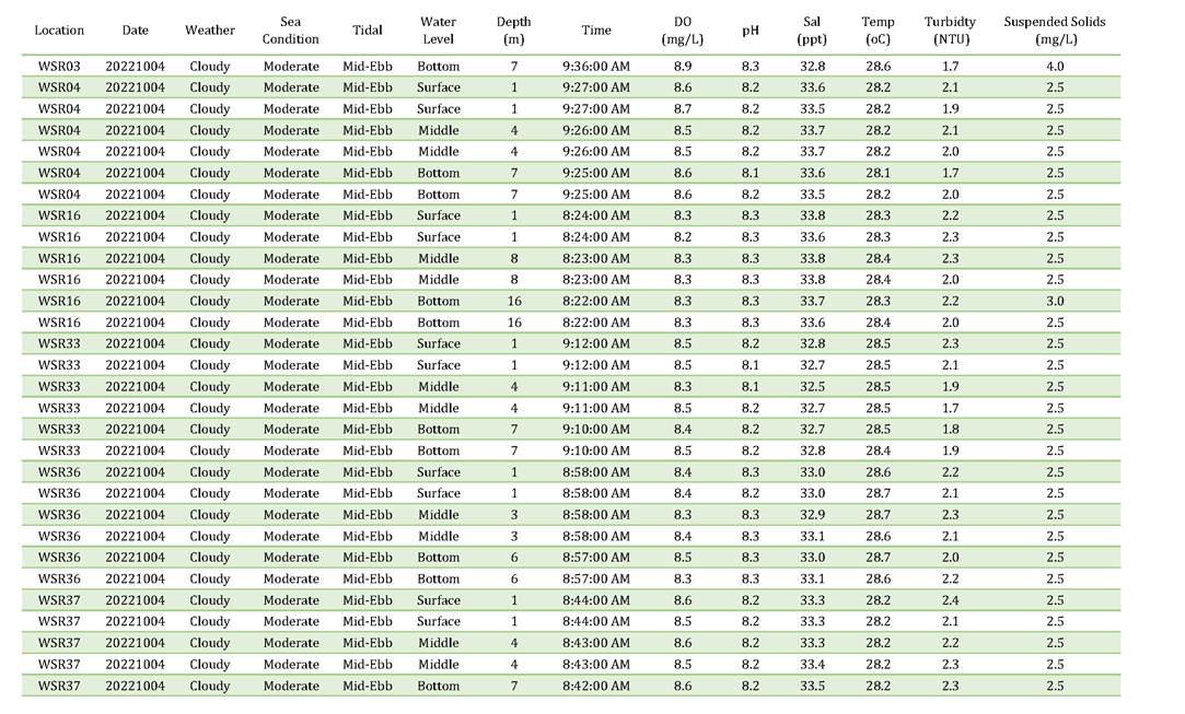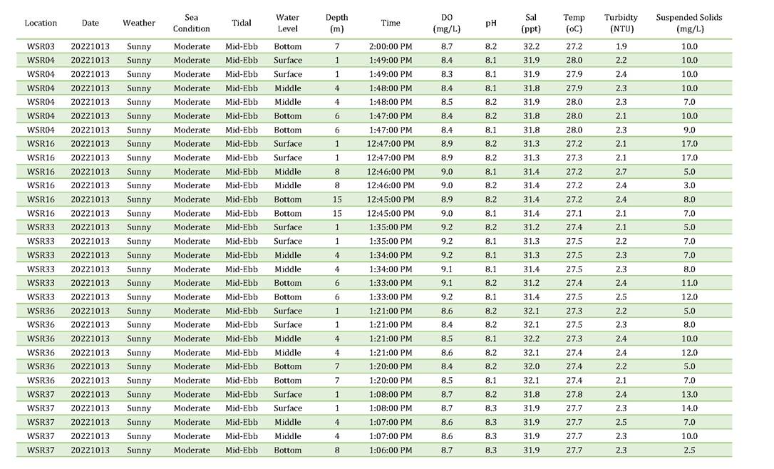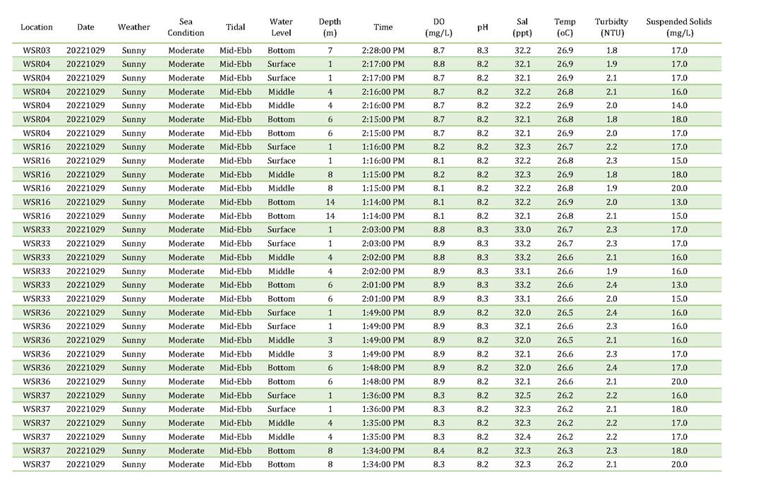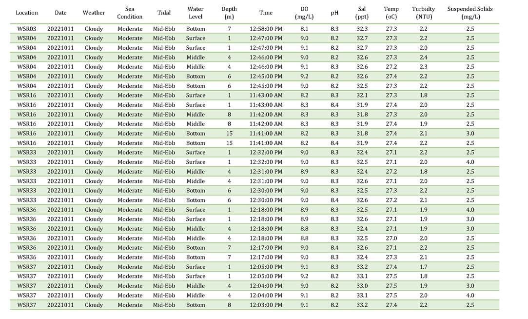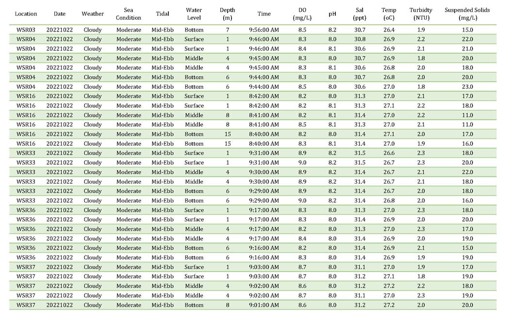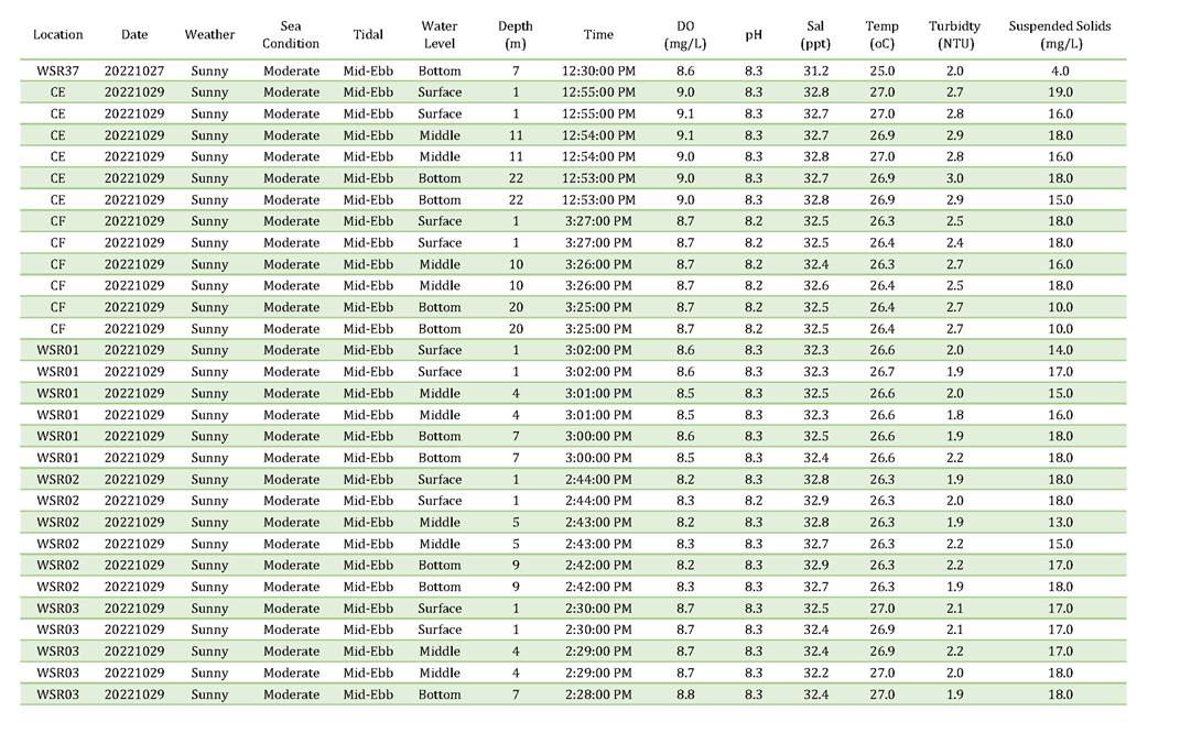 A11. Investigation on the reason of exceedance has been carried out, where the exceedances of SS on 4, 6, 8, 13, 15, 18, 20, 22, 25, 27 and 29 October 2022 were concluded to be unrelated to the Contract as detailed in the Incident Reports on Action Level or Limit Level Non-compliance along with supporting materials in Appendix K.