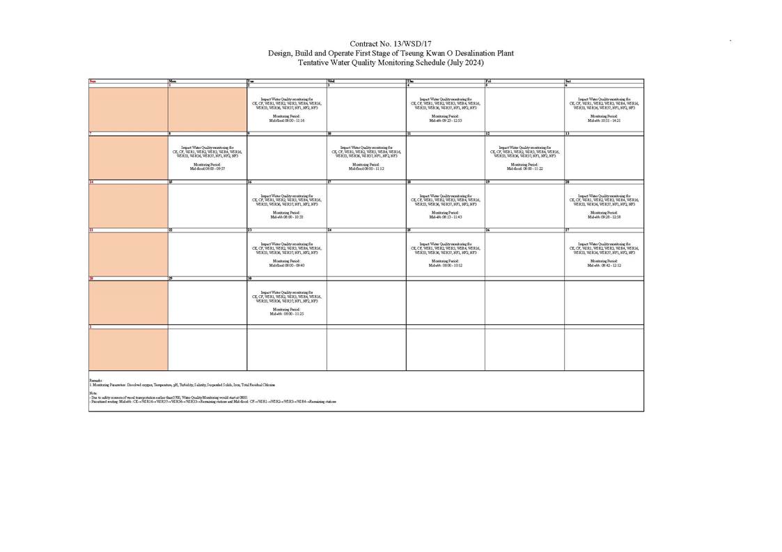 water quality monitoring on 20 June 2024, 27 June 2024,