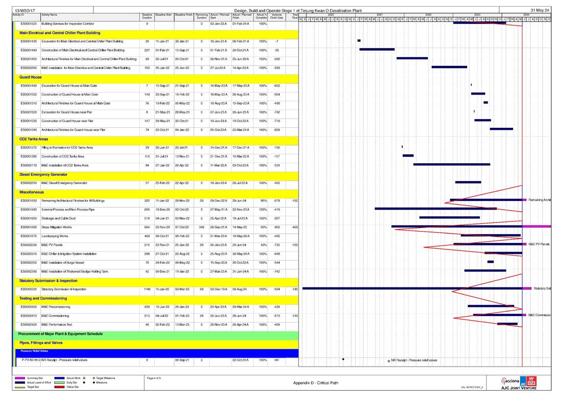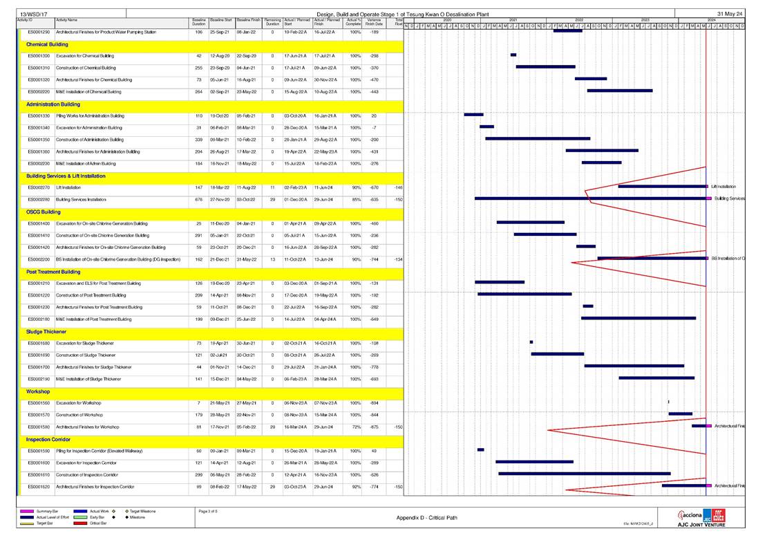 4 May 2024) - Rock Dowel Installation - Buttress Construction - Wire Mesh Laying - Drilling; Rock anchors installation, Rock break, Concreting Other - Watermain installation works at CLP 132 Kv Substation - Underground utility rectification work for Manhole and Draw pit - Underground utility Construction Work for Watermain water - Underground utility repair Work for Sewerage, Watermains work - Security Fence footing construction work - Light Pole installation work - Road Construction - Footpath Construction - Landscape Construction - Irrigation System installation - Landscape planting work - Traffic signage work - Workshop construction work, Tiling work, green roof and irrigation pipe - Workshop Building Services Installation, cable laying and termination - Tiling work and cladding installation for Elevated Walkway - Master meter defect rectification - Wave deflector Wall |