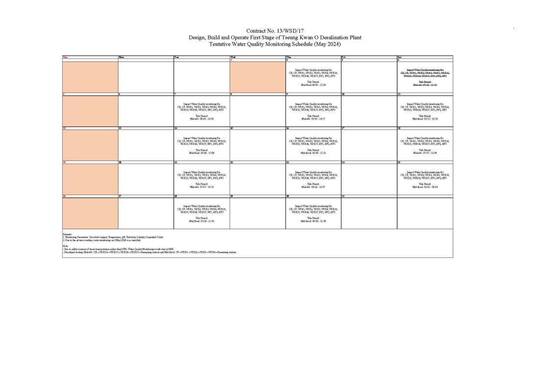 water quality monitoring were recorded between 1 May to 15 May 2024.