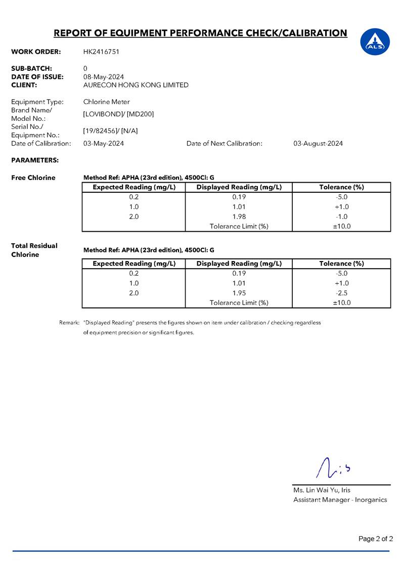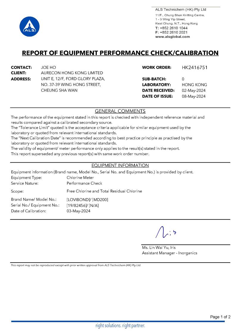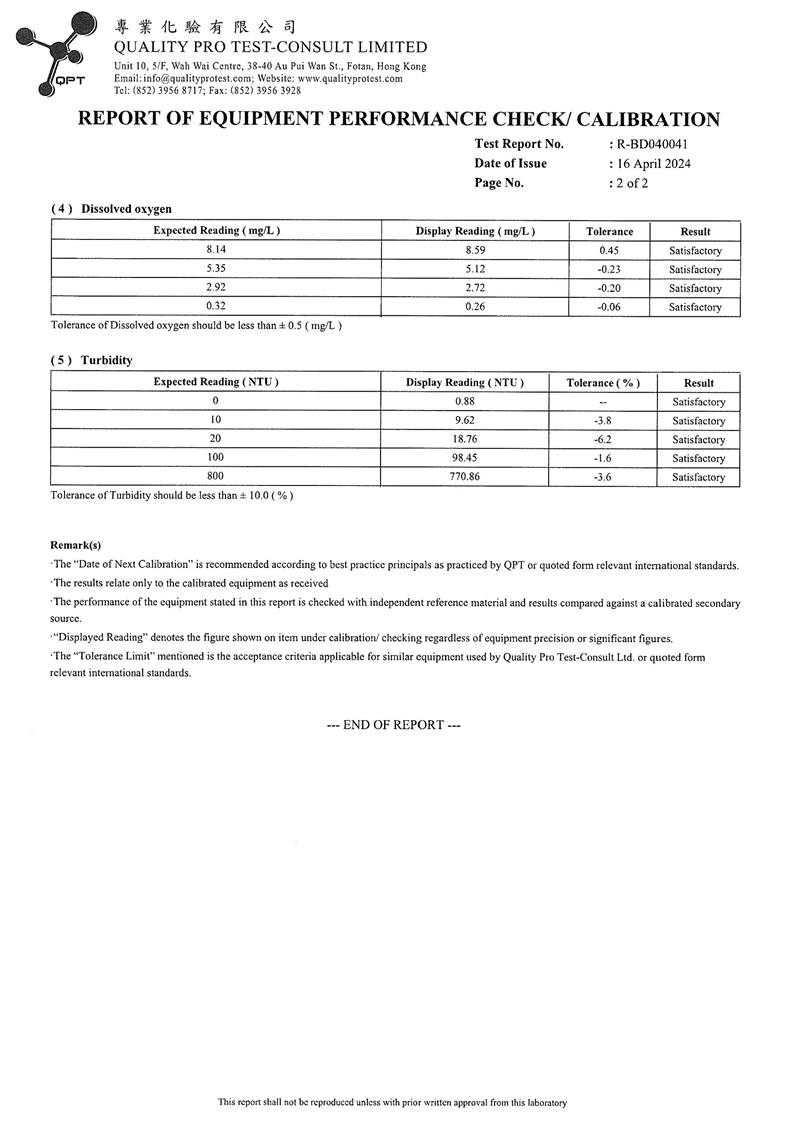 Appendix F Water Quality Monitoring Equipment and Landfill Gas Equipment Calibration Certificate