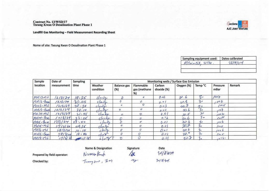 A9. In this reporting period, monthly landfill gas monitoring was conducted on 16 and 17 August 2024. No exceedances of action level and limit level was observed.