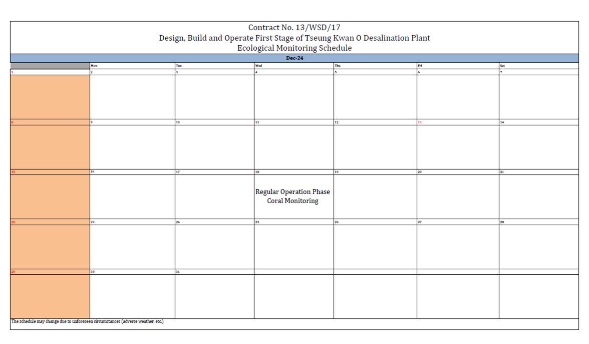 1.4. This is the 6th Operation Phase Monthly EM&A Report for the Contract which summarizes the key findings of the EM&A programme of the Tseung Kwan O Desalination Plant Operation phase during the reporting period from 1 December 2024 to 31 December 2024.