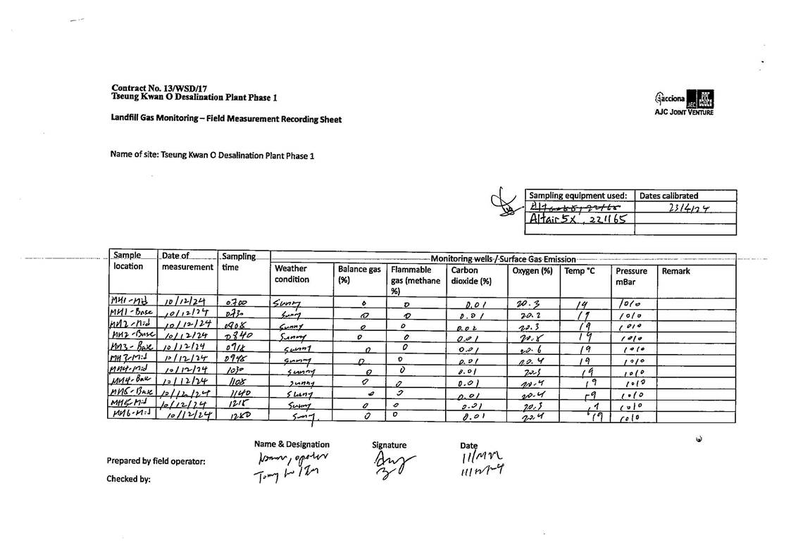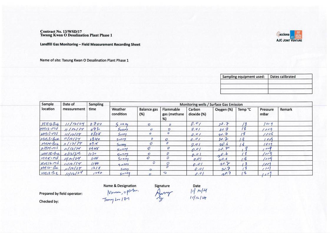 A10. In this reporting period, monthly landfill gas monitoring was conducted on 10 and 11 December 2024. No exceedances of action level and limit level was observed.